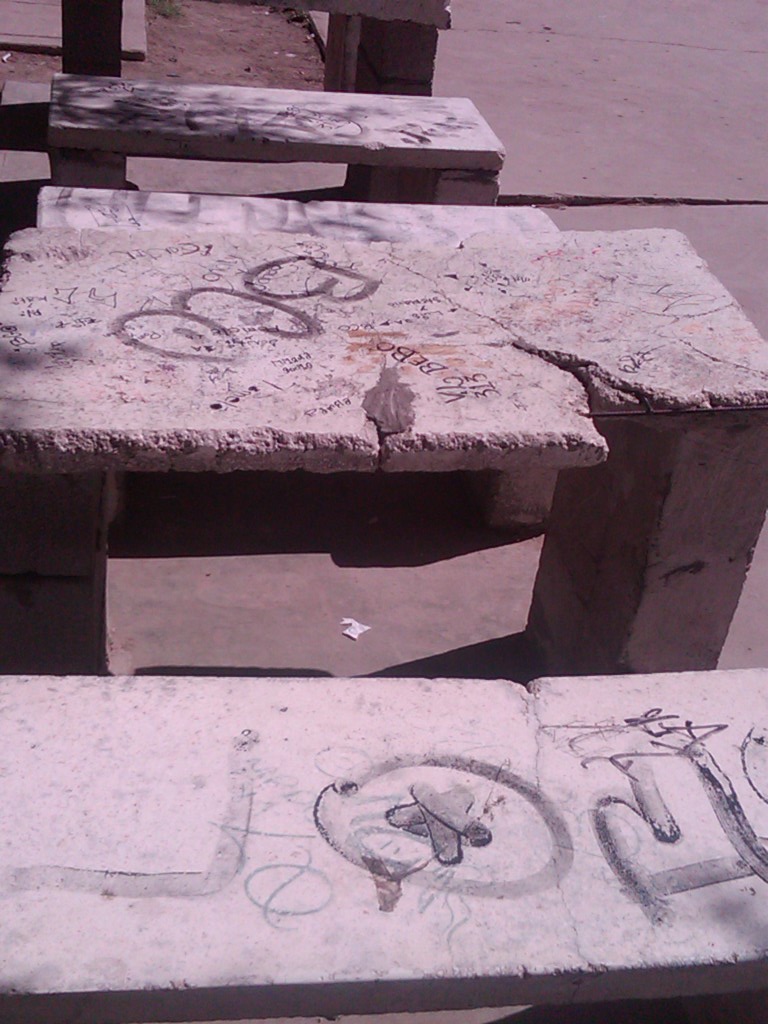 Pero ayer las cosas se agolparon de pronto y, para explicarme, no puedo más que dejarles las siguientes imágenes. Sí, dicen mucho. Quizá podrían buscar una investigación que, creo, se hizo en California, en la cual hablan del efecto que tiene el aspecto de nuestro vecindario en nuestra conducta. Sé que una banca o una pared no lo son todo para aprender. Pero también sé lo motivante que puede ser ir a una escuela “bonita”, “diferente” y, al menos, limpia. Además, a través de algunas de las imágenes podemos deducir el nivel académico de los docentes: “exelencia” (ver foto), es lo que tenemos. EXCELENCIA es lo que necesitamos.